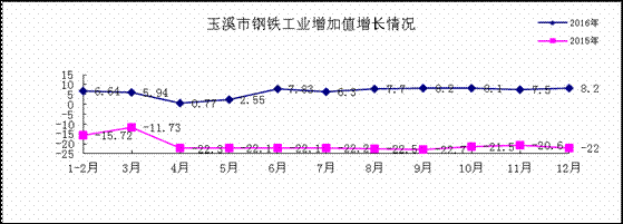 其中:钢铁行业:黑色金属采选业生产铁矿石1522万吨,减7.0%,完成工业增加值25.4亿元,增12.5%;黑色金属冶炼及压延加工业生产生铁400.9万吨,增4.8%;钢材648万吨,增7.9%;完成工业增加值24.7亿元,增8.2%。