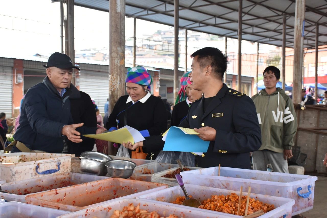 为深入学习贯彻习近平新时代中国特色社会主义思想和党的二十届三中全会精神,认真落实习近平总书记关于食品安全的重要论述和重要指示批示精神,突出宣传“诚信尚俭 同享食安”的主题,增强全乡群众食品安全防范意识,牢固树立食品安全主体责任意识,提升质量安全管理水平,营造一个健康、安全的消费环境。10月23日上午,羊街乡开展2024年“诚信尚俭 共享食安”食品安全周宣传活动,趁赶集日的机会,羊街市场监管所所长蔡记婷带队到农贸市场对赶集群众、摆摊商贩进行宣传教育。